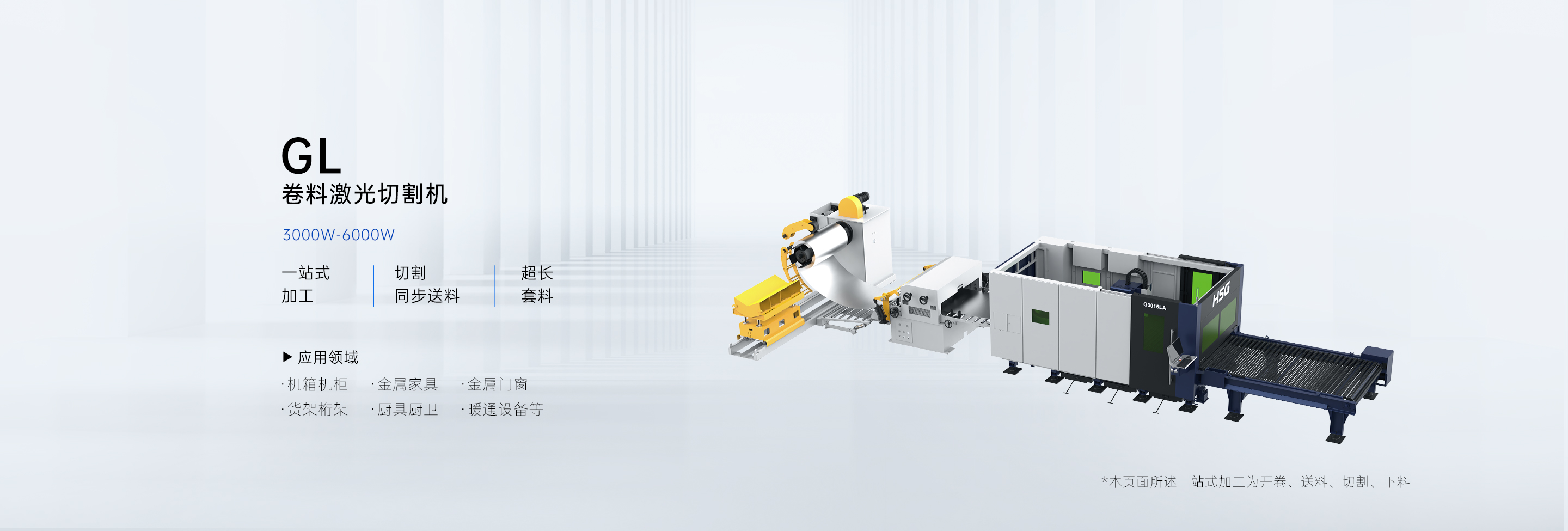 GL系列卷料激光切割機集開卷,校平、送料、激光切割、柔性下料等多重工序為一體。